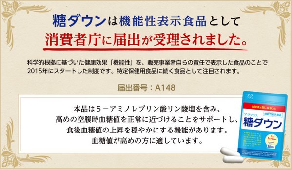 アラプラス糖ダウンの効果は、血糖値が気になる方向け(糖質ダウン)の機能性表示食品です。
